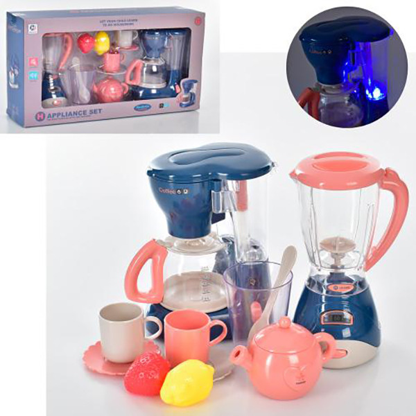 این مجموعه کامل از لوازم آشپزخانه انتخاب مناسبی برای کودکانی است که علاقه زیادی به آشپزی دارند. این اسباب بازی شامل همه چیزهایی است که برای یک تجربه آشپزی سرگرم کننده عالی نیاز دارید.این مجموعه شامل یک قهوه‌ساز باتری خور با ارتفاع 16 سانتی‌متر است که با جلوه‌های صوتی و نوری تحت تأثیر قرار می‌گیرد، و یک مخلوط‌کن باتری خور با همان ارتفاع که جلوه‌های صوتی و نوری تعاملی را نیز ارائه می‌دهد. اکنون کودک شما می تواند از شبیه سازی یک آشپزخانه واقعی لذت ببرد!به علاوه این ست شامل 2 فنجان، 2 نلبکی، یک لیوان، یک قاشق و تزئینات زیبا به شکل توت فرنگی، لیمو و قوری است. کودک شما می تواند نوشیدنی ها و غذاهای خوشمزه را با تقلید از تجربیات آشپزی در دنیای واقعی تهیه کند.