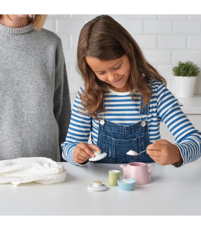 این سرویس شامل: ۱ قوری، ۱ عدد قندان و ۱ قوری شیر در رنگ های پاستلی می باشد. در سری DUKTIG، هر چیزی که یک سرآشپز کوچک برای موفقیت در آشپزخانه نیاز دارد وجود دارد. قوری حدود۱۱۰ میلی لیتر گنجایش دارد.